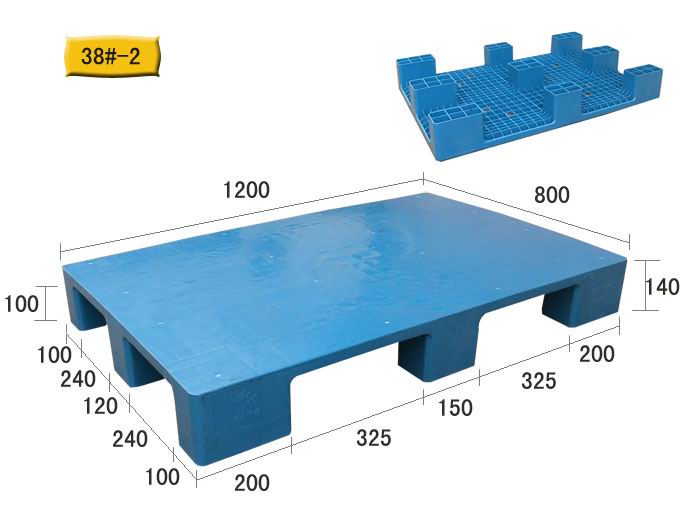 產(chǎn)品型號(hào): HD-1208JP1 產(chǎn)品貨號(hào): T38#-2 產(chǎn)品外尺寸: 1200×800×140 產(chǎn)品內(nèi)尺寸: 產(chǎn)品結(jié)構(gòu): 九腳平板 產(chǎn)品內(nèi)容量(L): 承重量(T): 動(dòng)載:1T 靜載:4T 貨架:X 產(chǎn)品認(rèn)可標(biāo)準(zhǔn): ISO9001:2000質(zhì)量體系認(rèn)證 此款塑料托盤適用平地墊倉使用,防潮效果好,且易于清洗;