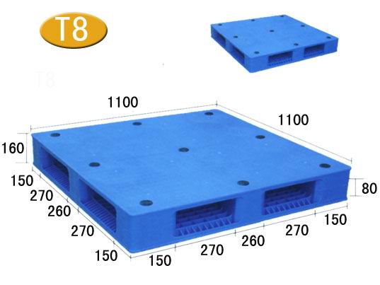 產(chǎn)品型號: HD-1111SP2產(chǎn)品貨號: T8 產(chǎn)品外尺寸: 1100×1100×160mm 產(chǎn)品內(nèi)尺寸: 產(chǎn)品結(jié)構(gòu): 雙面焊接平板面重型 產(chǎn)品內(nèi)容量(L): 承重量(T): 動載1.5噸,靜載6噸,貨架1噸 產(chǎn)品認可標準: ISO9001:2000質(zhì)量體系認證 此款塑料托盤適用平地墊倉及碼垛使用,內(nèi)含5個螺栓,增加了托盤強度