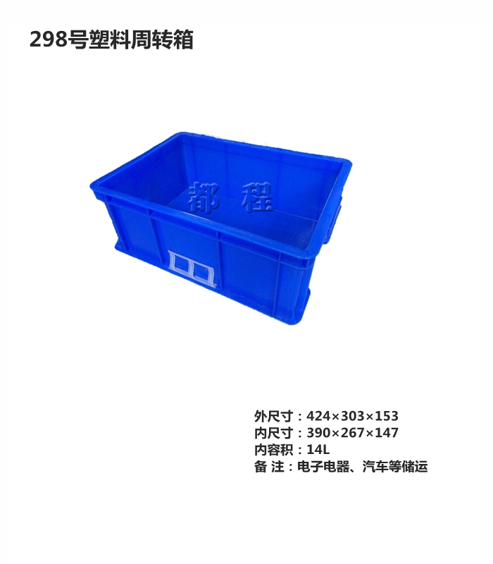 編號(hào): 298 外尺寸(mm): 424*303*153 內(nèi)尺寸(mm): 390*267*147 內(nèi)容積(L): 14 備注: 電子電器、汽車等儲(chǔ)運(yùn)。