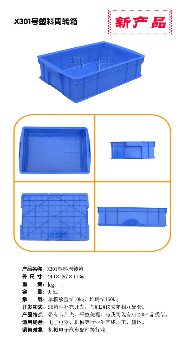 編號(hào): X301 外尺寸(mm): 440*297*113 內(nèi)尺寸(mm): 400*272*105 內(nèi)容積(L): 9.5 備注: SH箱型補(bǔ)充開發(fā),與WH2#儀表箱相互配套,帶有卡片夾,平整美觀,適用于電子電器、機(jī)械等行業(yè)生產(chǎn)線加工、儲(chǔ)運(yùn)。